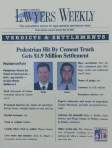 El caso involucró la trágica muerte de una familia de cuatro personas que murieron cuando una empresa de señalización vial causó un embotellamiento en una autopista de Carolina del Norte. Dos camiones con remolque no pudieron detenerse a tiempo. Un camión cisterna chocó con la parte trasera de la camioneta de la familia, y los mató instantáneamente. Nuestros abogados presentaron una demanda y resolvieron los reclamos contra dos empresas de transporte por 5.45 millones de dólares (el límite de su seguro).